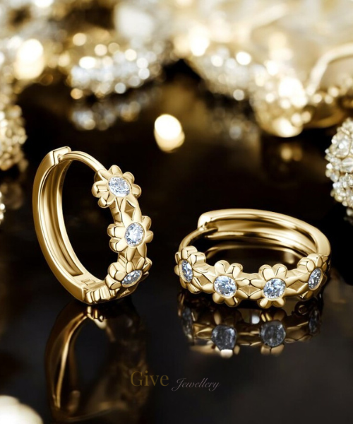 Give – oorbellen versierd met delicate bloemen en moissanite stenen