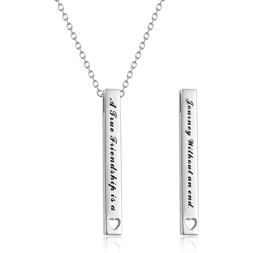 Sterling Silver Bar Necklace – Inspirational Jewelry for Women: Birthday Gifts for Sister, Friends(A True Friendship is a Journey Without an end-Silver)