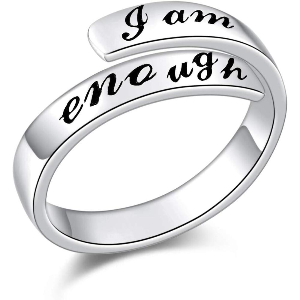 AXELUNA 925 Sterling Silver Ring I am Enough Adjustable Rings for Women (Silver, 7)(Silver)