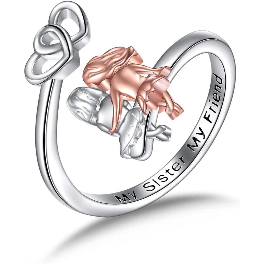 AXELUNA 925 Sterling Silver Sisters Ring Adjustable My Sister My Friend Jewelry Gifts for Women Heart Friendship Rings Sisters Gifts from Sister(2 Sisters)