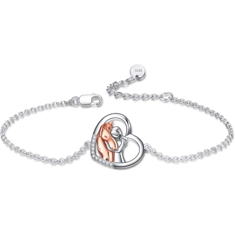 YFN Horse Jewelry Gift 925 Sterling Silver Horse Adjustable Bracelet for Women(A Rose Horse Bracelet)