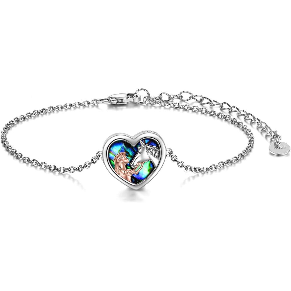 YFN Horse Jewelry Gift 925 Sterling Silver Horse Adjustable Bracelet for Women(Abalone Horse Bracelet)