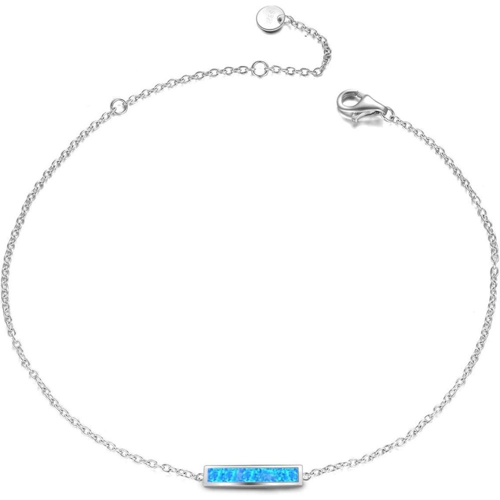 Sterling Silver Created Opal Anklets Dainty Foot Ankle Bracelets for Women(Blue Bar-silver)