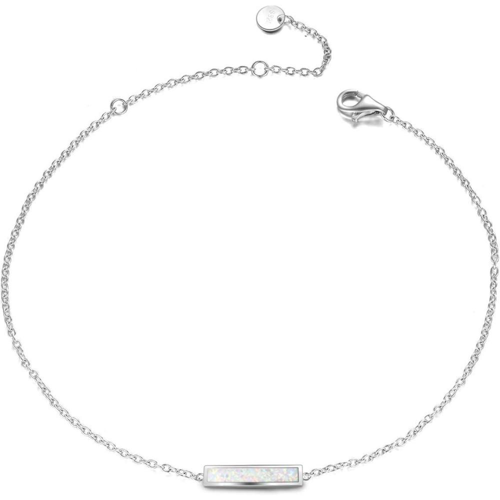 Sterling Silver Created Opal Anklets Dainty Foot Ankle Bracelets for Women(White Bar-silver)