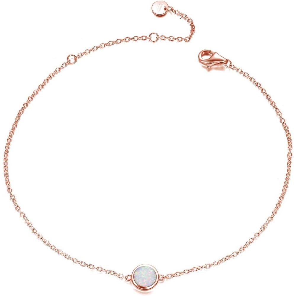 Sterling Silver Created Opal Anklets Dainty Foot Ankle Bracelets for Women(White Disc-rose gold plated)