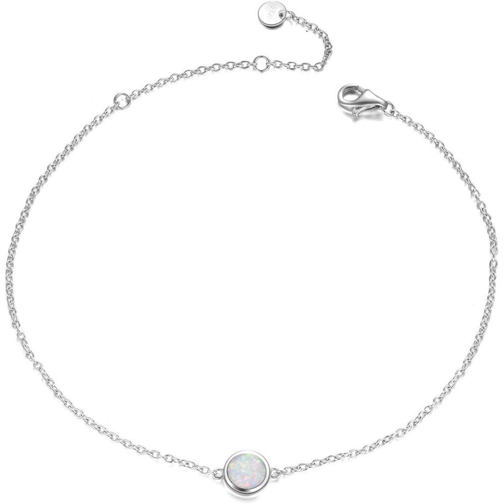 Sterling Silver Created Opal Anklets Dainty Foot Ankle Bracelets for Women(White Disc-silver)