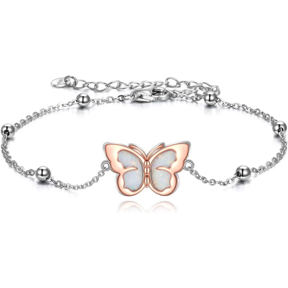 YFN Anklets Bracelet for Women Sterling Silver Butterfly Heart Tree Hummingbird Cardinal Anklet Charm Chain Bracelet Beach Foot Jewelry for Women(Butterfly Anklets Bracelet)