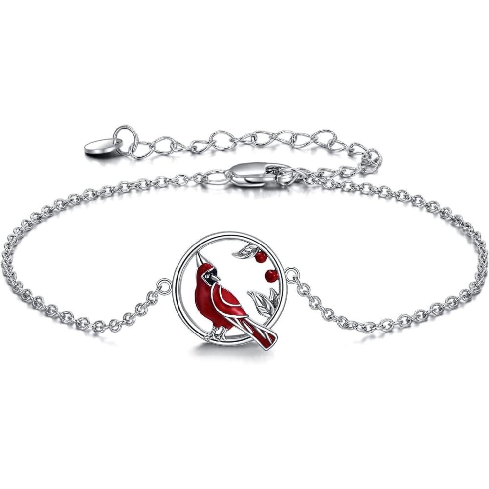 YFN Anklets Bracelet for Women Sterling Silver Butterfly Heart Tree Hummingbird Cardinal Anklet Charm Chain Bracelet Beach Foot Jewelry for Women(Red-Cardinal anklets for women)