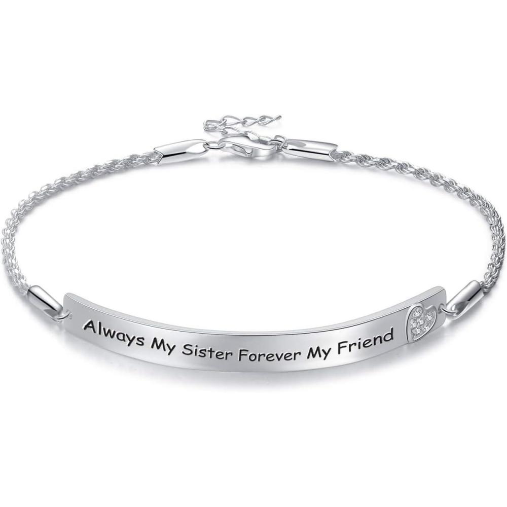 Sterling Silver Engraved Inspirational Adjustable Bracelet Graduation Gift for Her, Women Bracelets(Always My Sister Forever My Friend)