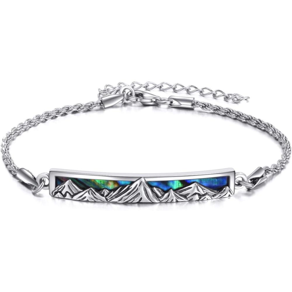 Sterling Silver Engraved Inspirational Adjustable Bracelet Graduation Gift for Her, Women Bracelets(Mountain Abalone)