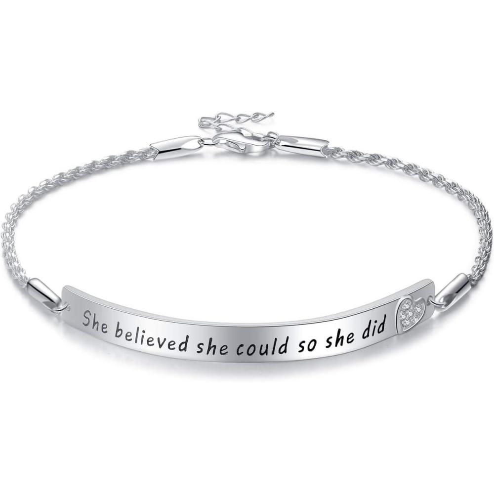 Sterling Silver Engraved Inspirational Adjustable Bracelet Graduation Gift for Her, Women Bracelets(She Believed She Could So She Did)