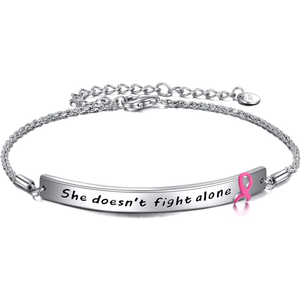 Sterling Silver Engraved Inspirational Adjustable Bracelet Graduation Gift for Her, Women Bracelets(She doesn’t fight alone)