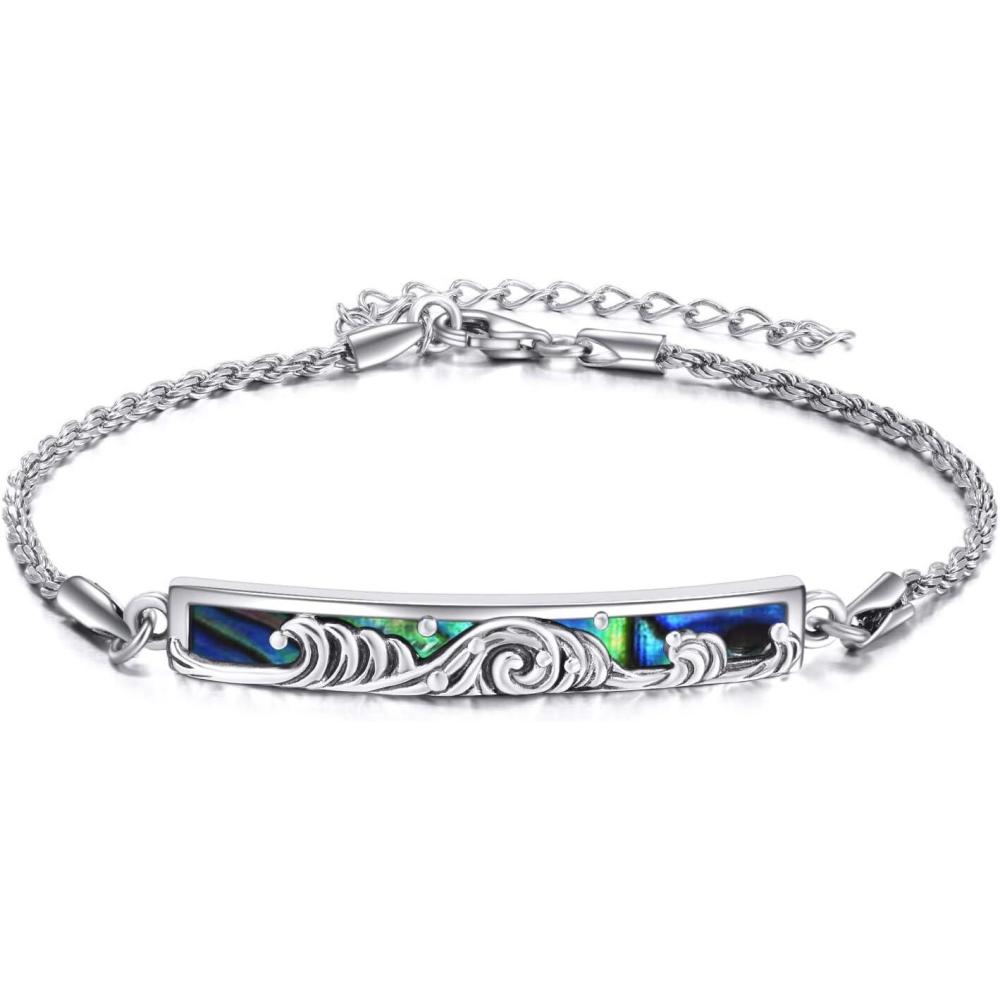 Sterling Silver Engraved Inspirational Adjustable Bracelet Graduation Gift for Her, Women Bracelets(Wave Abalone)