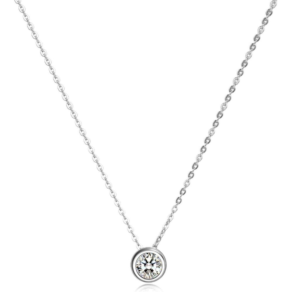 925 Sterling Silver Solitaire Cubic Zirconia Necklace for Women Teen Girls(April – Clear)