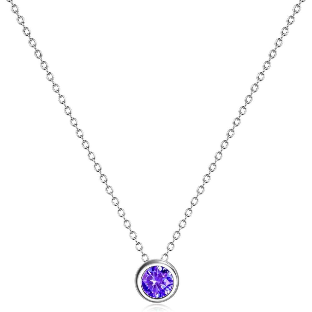 925 Sterling Silver Solitaire Cubic Zirconia Necklace for Women Teen Girls(February – Purple)