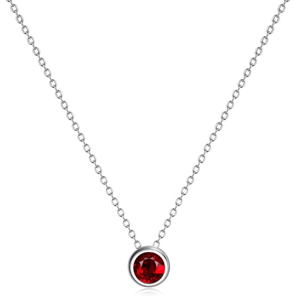 925 Sterling Silver Solitaire Cubic Zirconia Necklace for Women Teen Girls(July – Red)