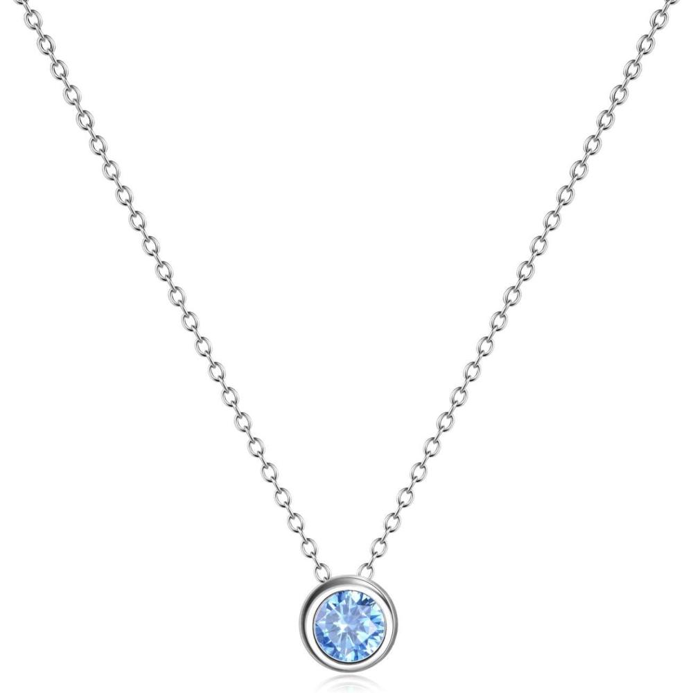 925 Sterling Silver Solitaire Cubic Zirconia Necklace for Women Teen Girls(March – Light Blue)