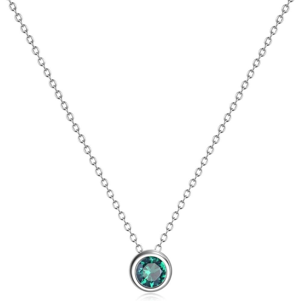 925 Sterling Silver Solitaire Cubic Zirconia Necklace for Women Teen Girls(May – Green)