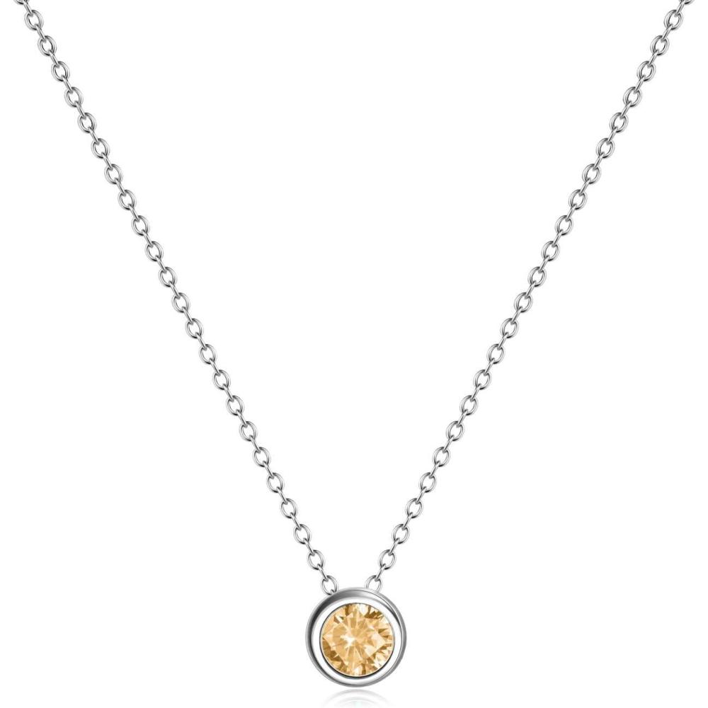 925 Sterling Silver Solitaire Cubic Zirconia Necklace for Women Teen Girls(November – Citrine)