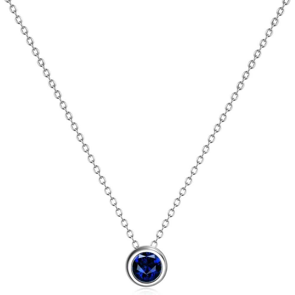 925 Sterling Silver Solitaire Cubic Zirconia Necklace for Women Teen Girls(September – Blue)