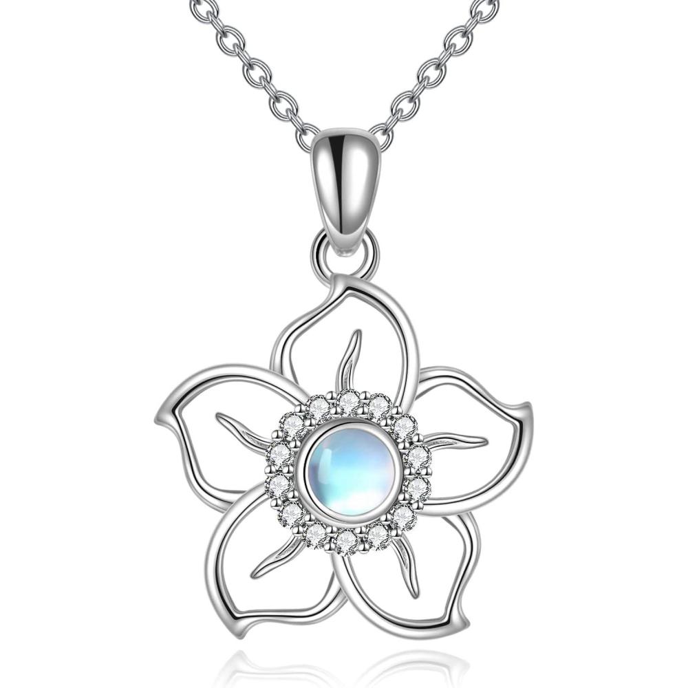 Flower Moonstone Necklace Sterling Silver Sky Flower Pendant Moonstone Jewelry for Women Teen Girls(Flower)