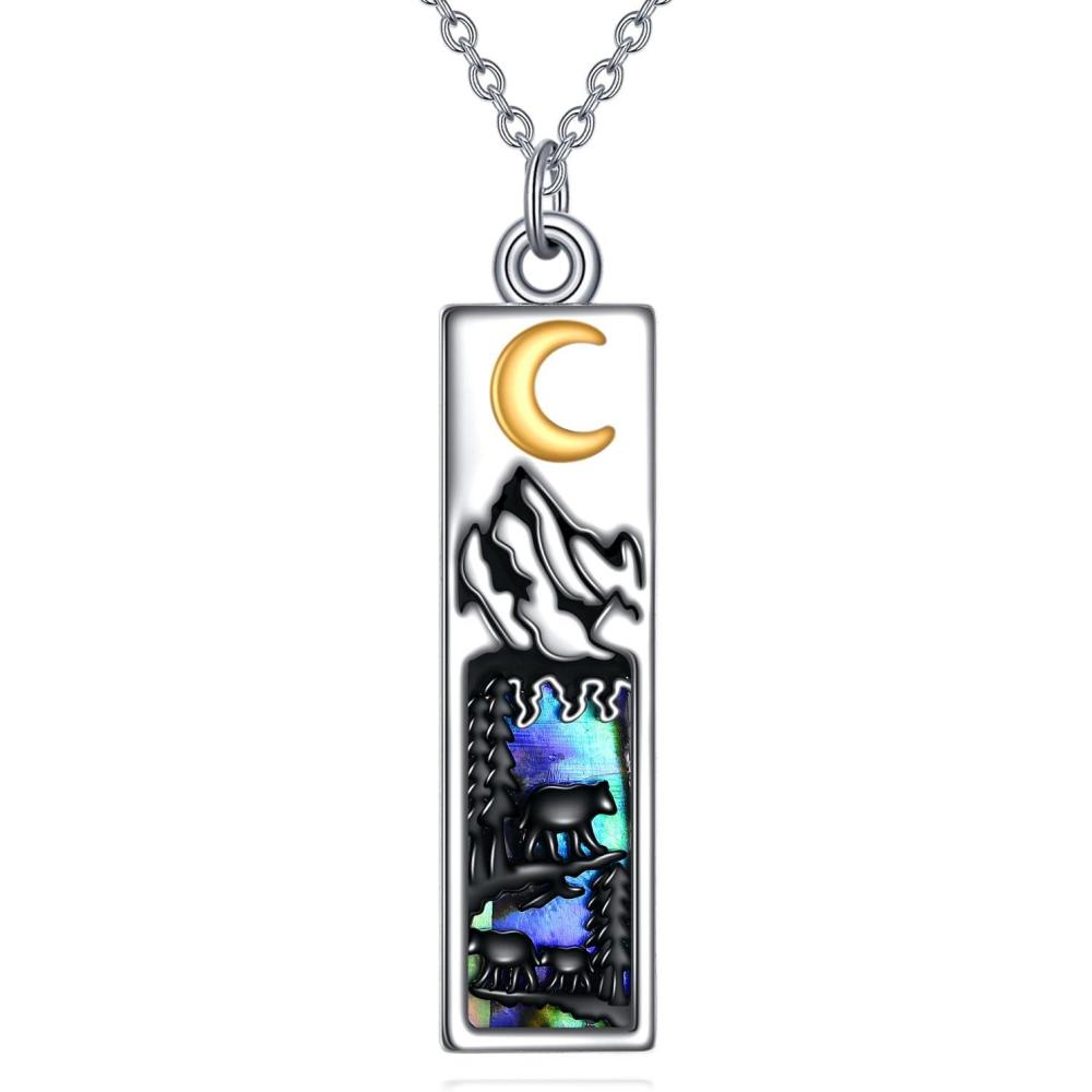 YFN Mountain Necklace for Women Sterling Silver Nature Jewelry Gift for Skiers, Hikers, Campers, Climbers and Nature Lovers(Black-Mountain with 3 Bear)