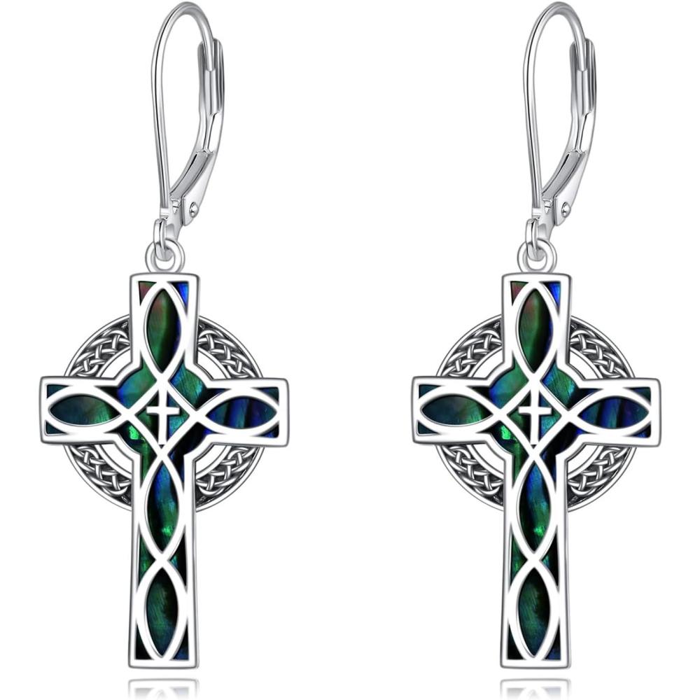 YFN Cross Earrings Sterling Silver Dangle Drop Leverback Cross Earrings Religion Jewelry Christians Gifts for Women Men(C-Celtic)