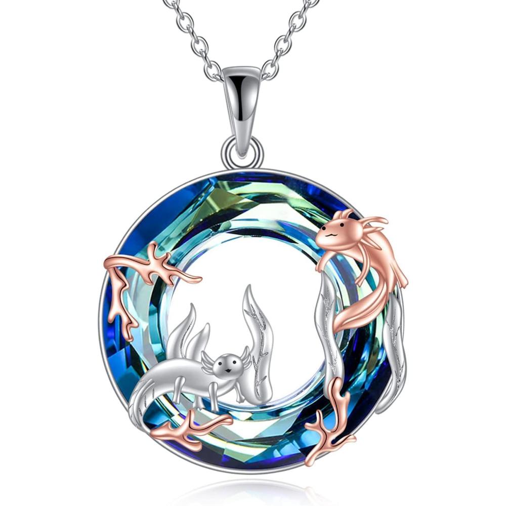 YFN Axolotl Necklace 925 Sterling Silver Mexican Axolotl Necklaces for Women Animal Pendant Funny Axolotls Embraces Jewelry Gift