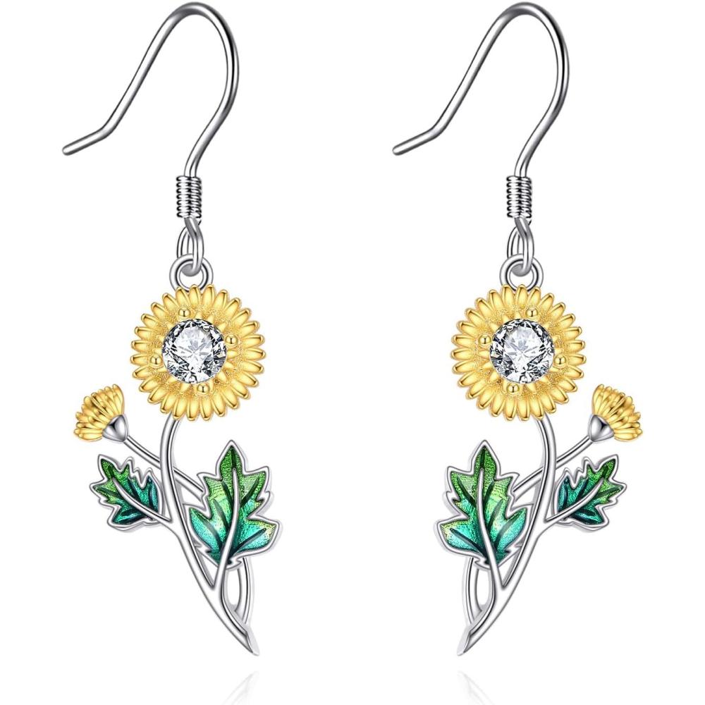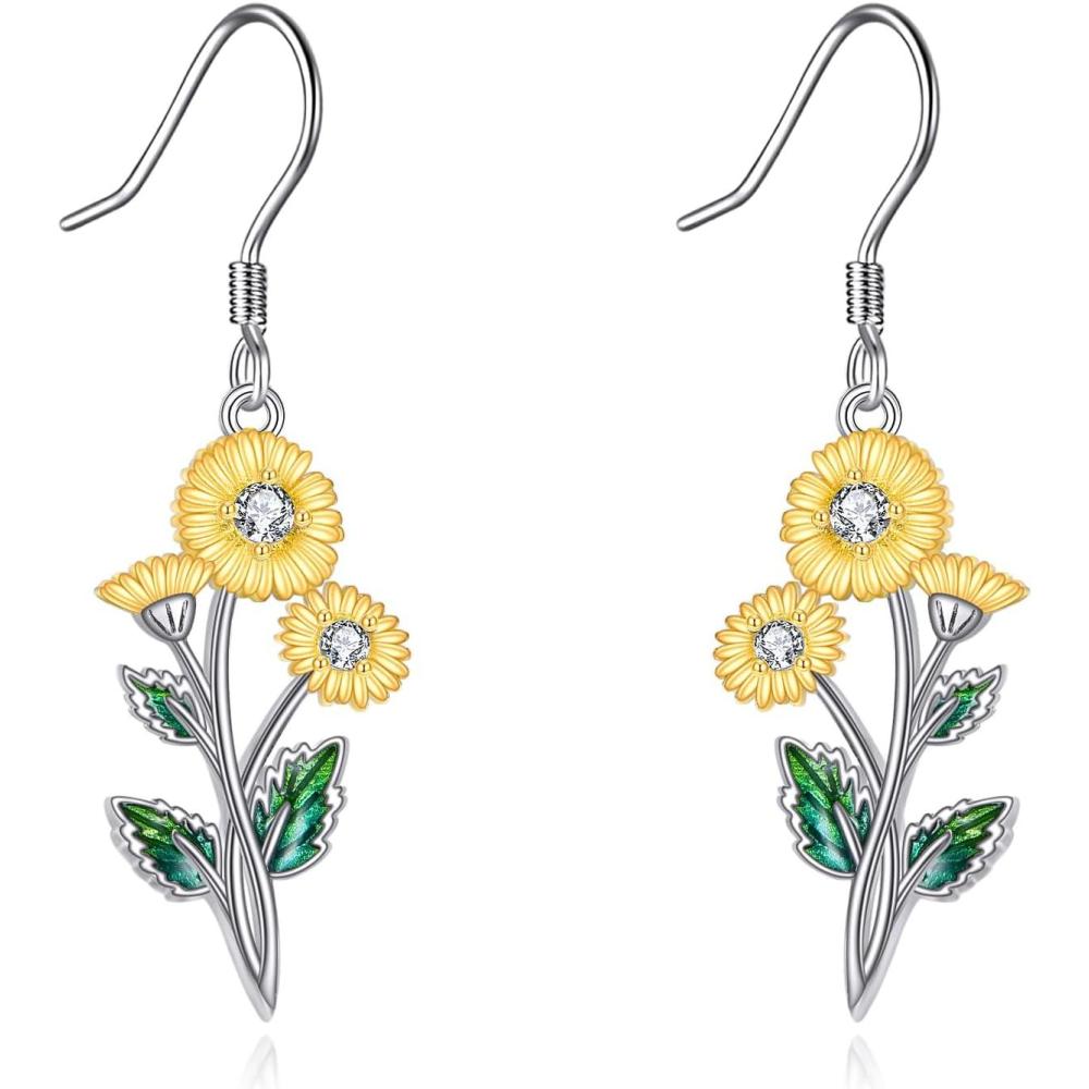 YFN Birth Month Flower Drop Dangle Earrings S925 Sterling Silver Birthday Jewelry Gifts for Women(Drop-Aprial Daisy Earrings)
