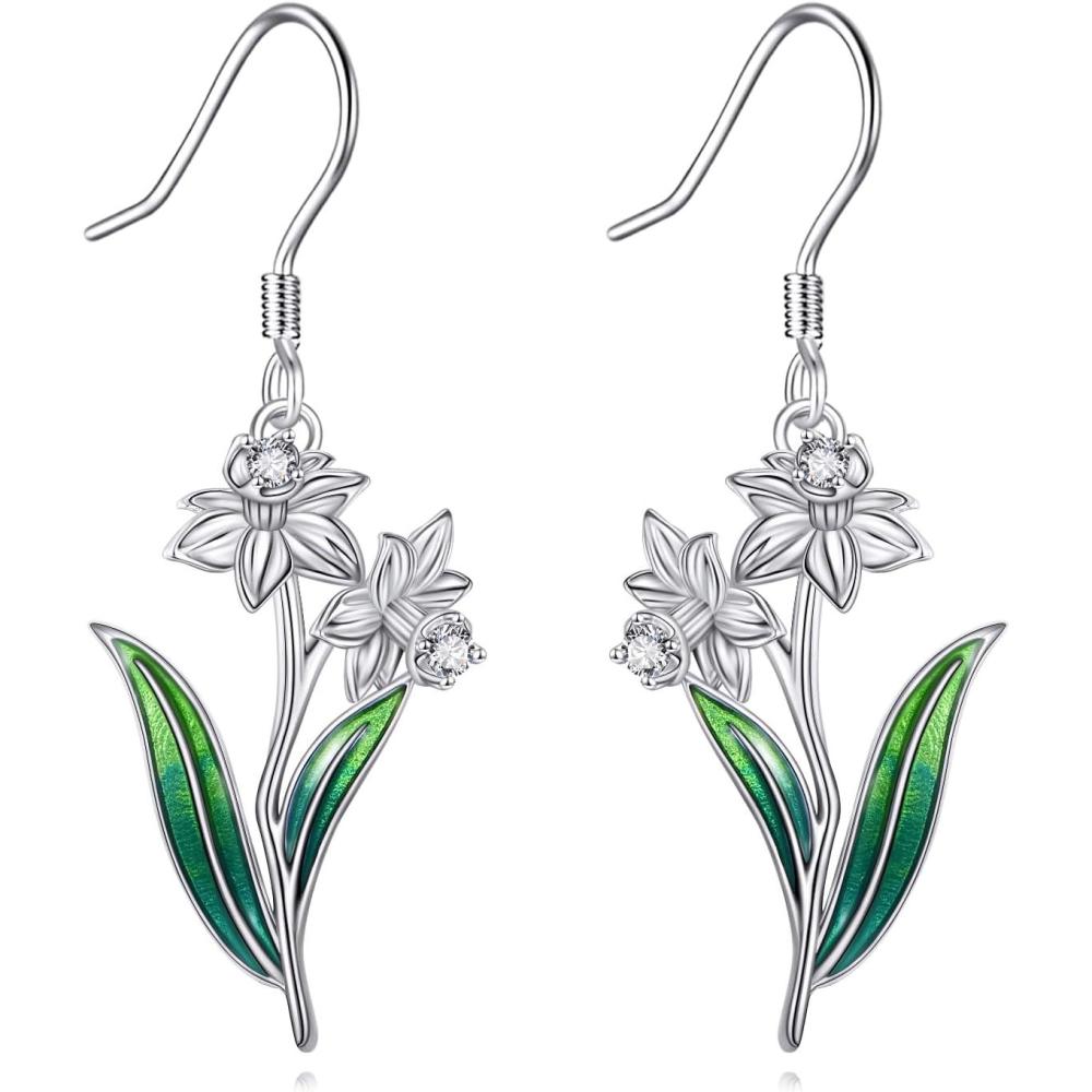 YFN Birth Month Flower Drop Dangle Earrings S925 Sterling Silver Birthday Jewelry Gifts for Women(Drop-Dec.Narcissus Earrings)