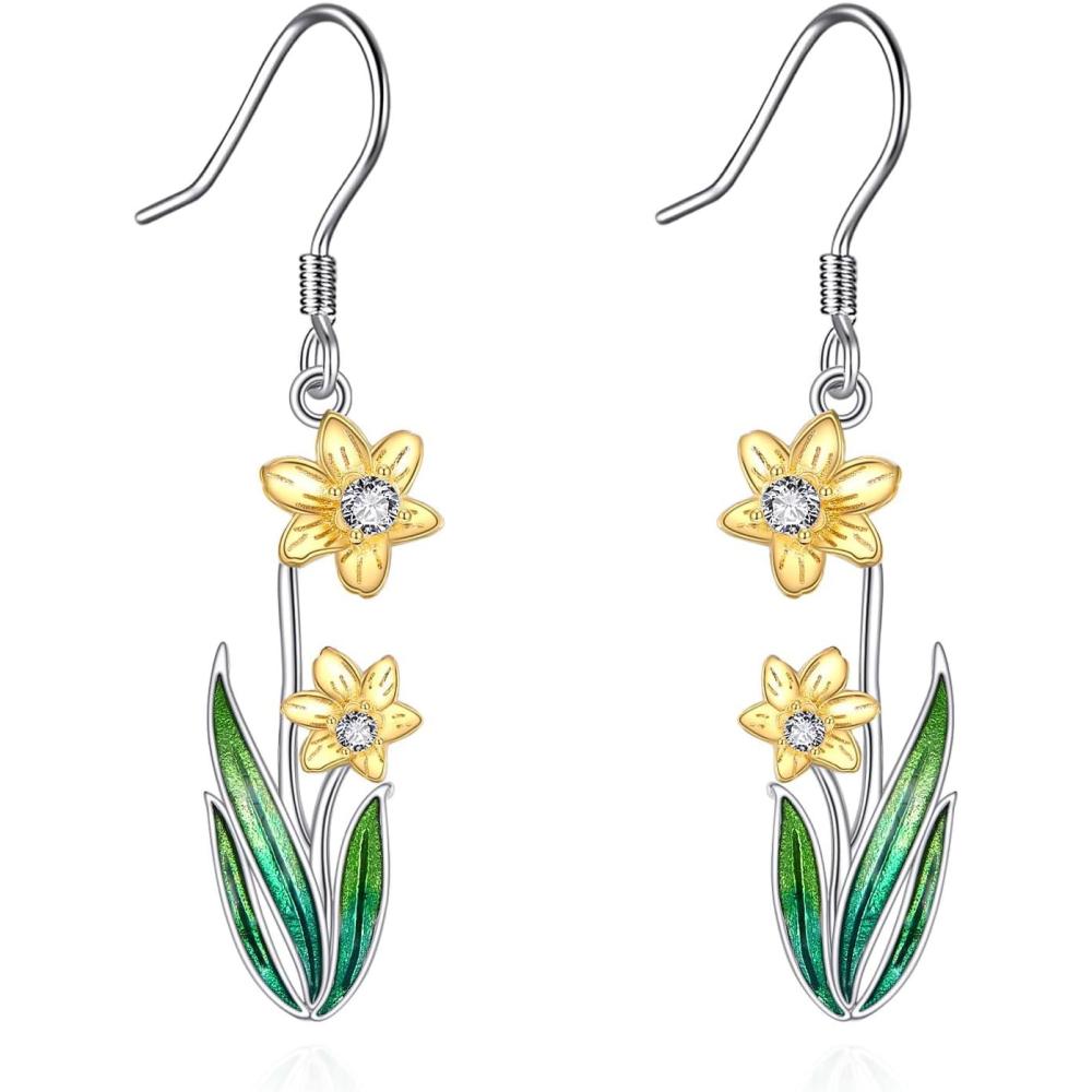 YFN Birth Month Flower Drop Dangle Earrings S925 Sterling Silver Birthday Jewelry Gifts for Women(Drop-Daffodil March Earrings)