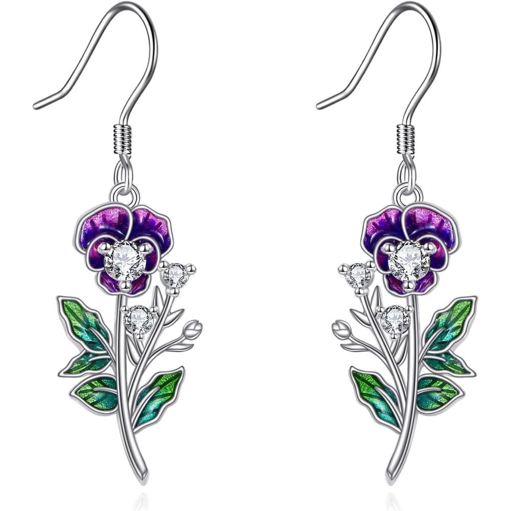 YFN Birth Month Flower Drop Dangle Earrings S925 Sterling Silver Birthday Jewelry Gifts for Women(Drop-February-Violet Earrings)