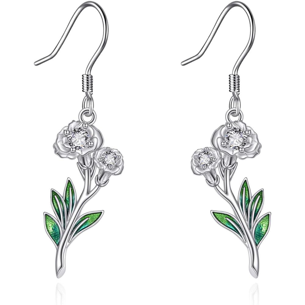 YFN Birth Month Flower Drop Dangle Earrings S925 Sterling Silver Birthday Jewelry Gifts for Women(Drop-Jan.-Carnation Earrings)