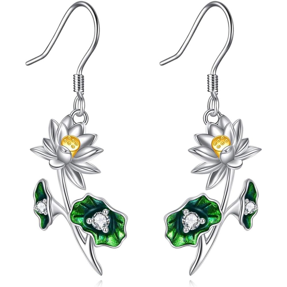 YFN Birth Month Flower Drop Dangle Earrings S925 Sterling Silver Birthday Jewelry Gifts for Women(Drop-July Lotus Flower Earrings)