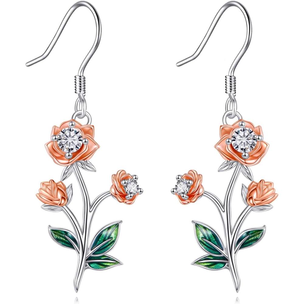 YFN Birth Month Flower Drop Dangle Earrings S925 Sterling Silver Birthday Jewelry Gifts for Women(Drop-Jun.Rose Flower Earrings)