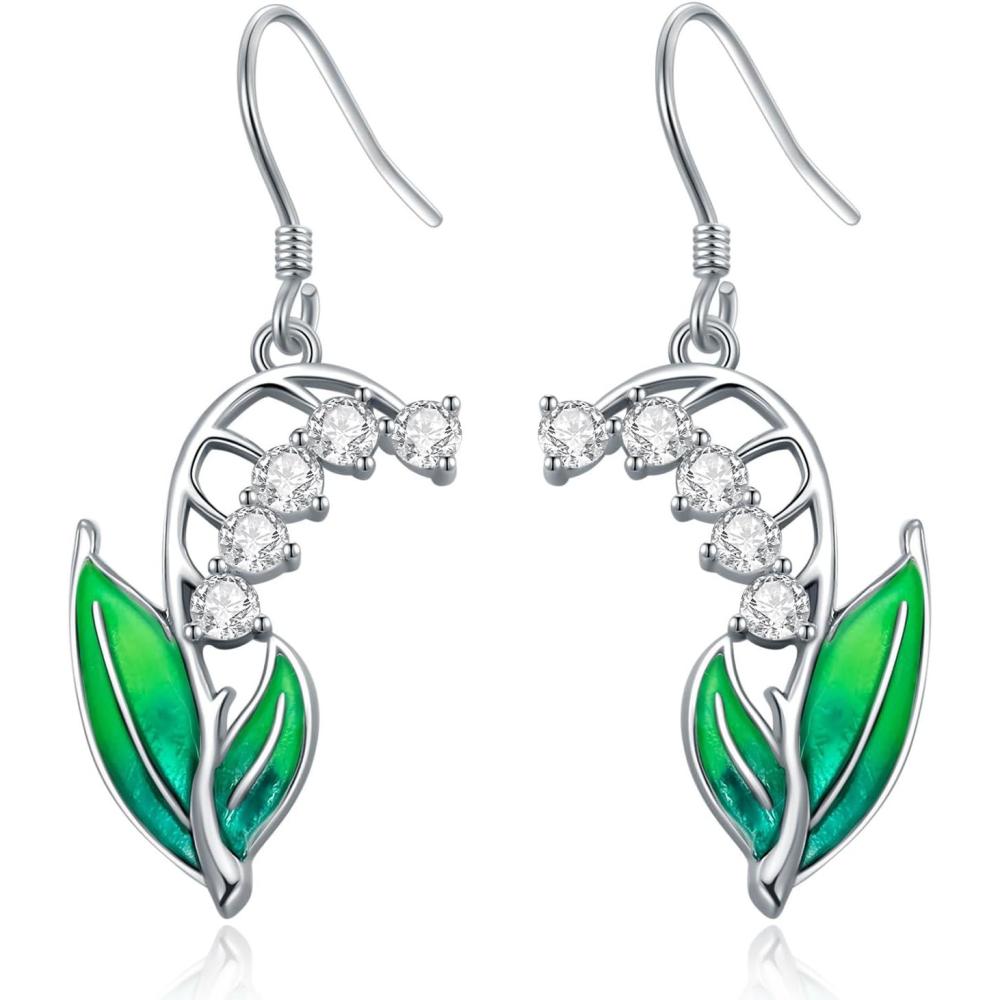 YFN Birth Month Flower Drop Dangle Earrings S925 Sterling Silver Birthday Jewelry Gifts for Women(May-Lily Of The Valley)