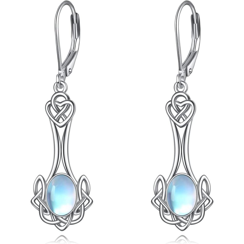 YFN Celtic Moonstone Irish Knot Drop Dangle Earrings Sterling Silver Leverback Earrings Jewelry for Women