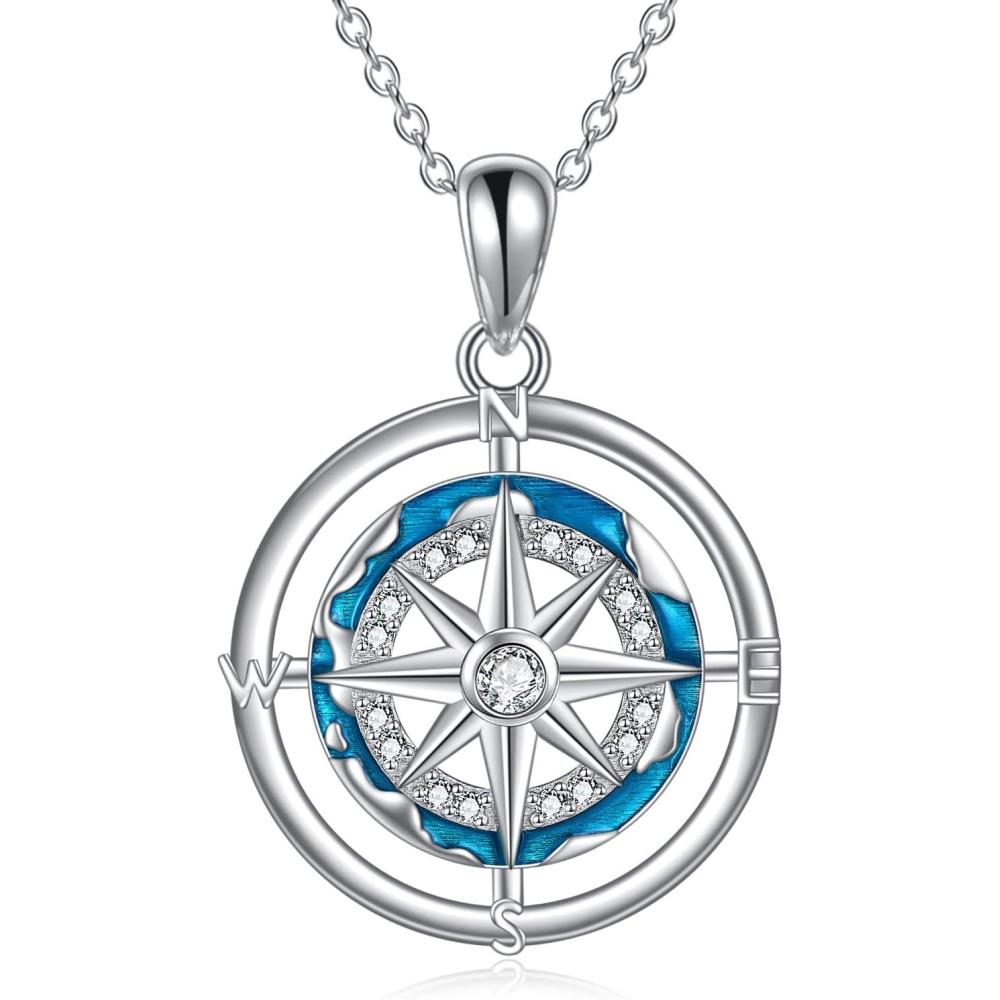 YFN Compass Necklace Sterling Silver Map Necklace Graduation Friendship Talisman Travel Necklace Inspirational Graduation Gift Jewelry Gifts for Women Men