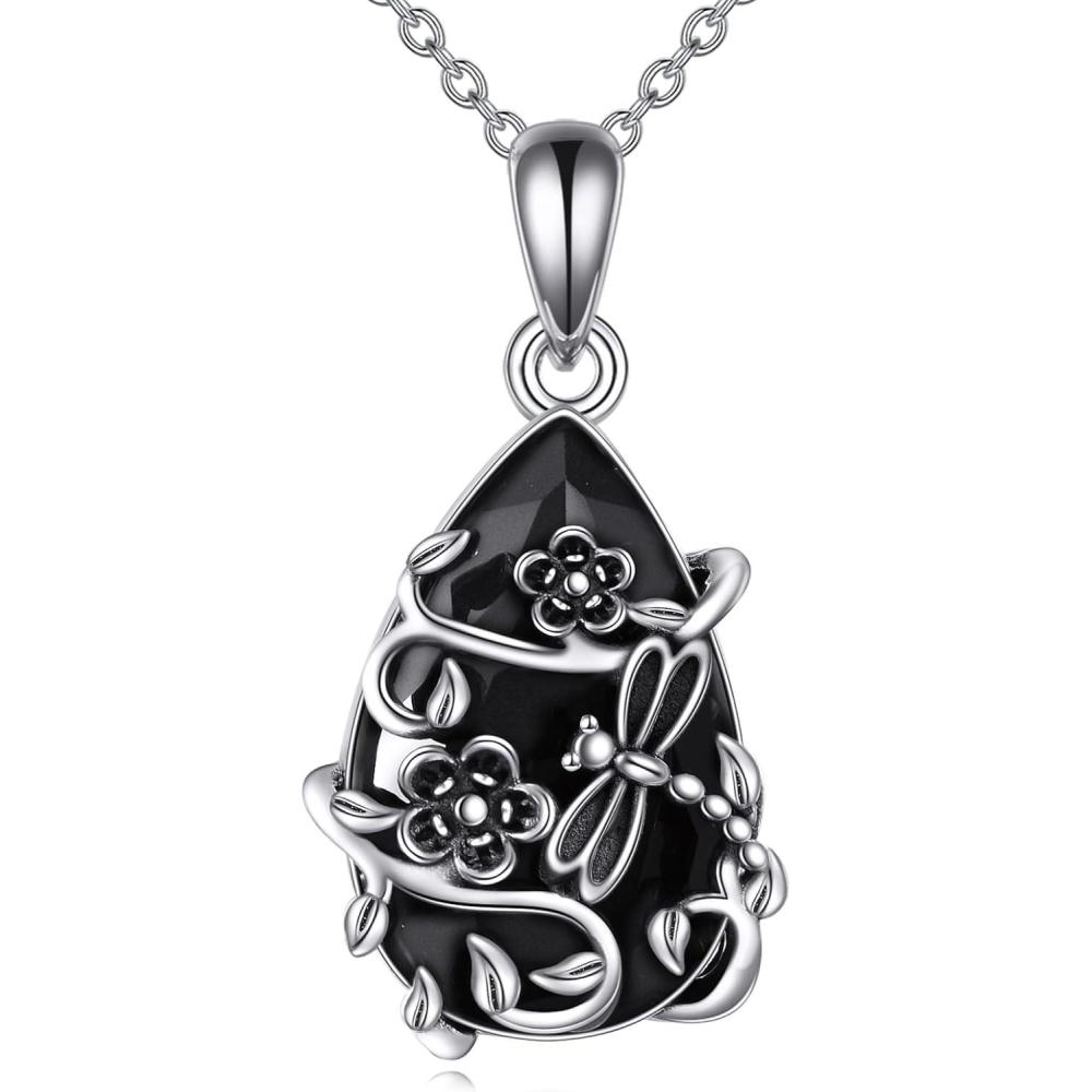 YFN Animal Necklace Sterling Silver Cute Animal Pendant Jewelry Gifts for Women(Dragonfly Black)