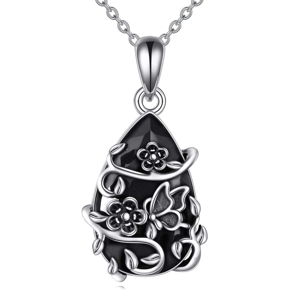 YFN Animal Necklace Sterling Silver Cute Animal Pendant Jewelry Gifts for Women(Butterfly Black)