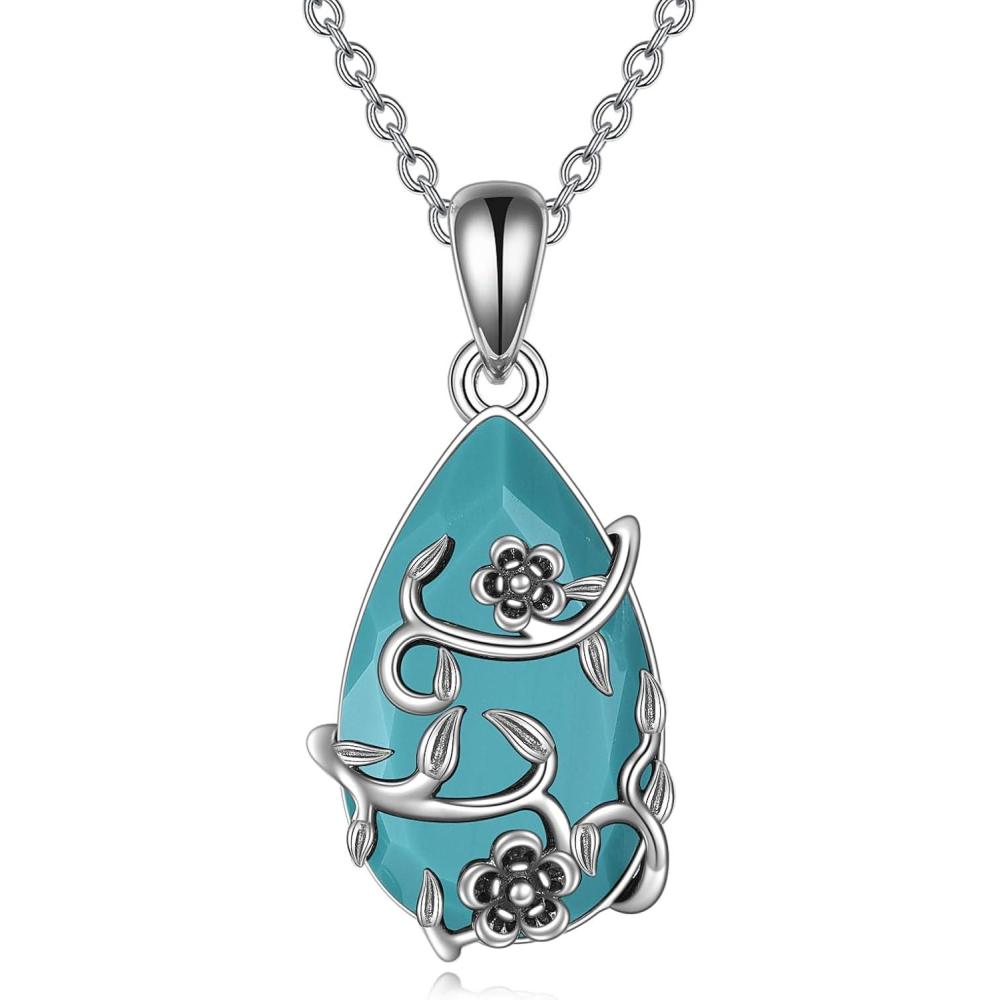 YFN Animal Necklace Sterling Silver Cute Animal Pendant Jewelry Gifts for Women(Flower Blue)