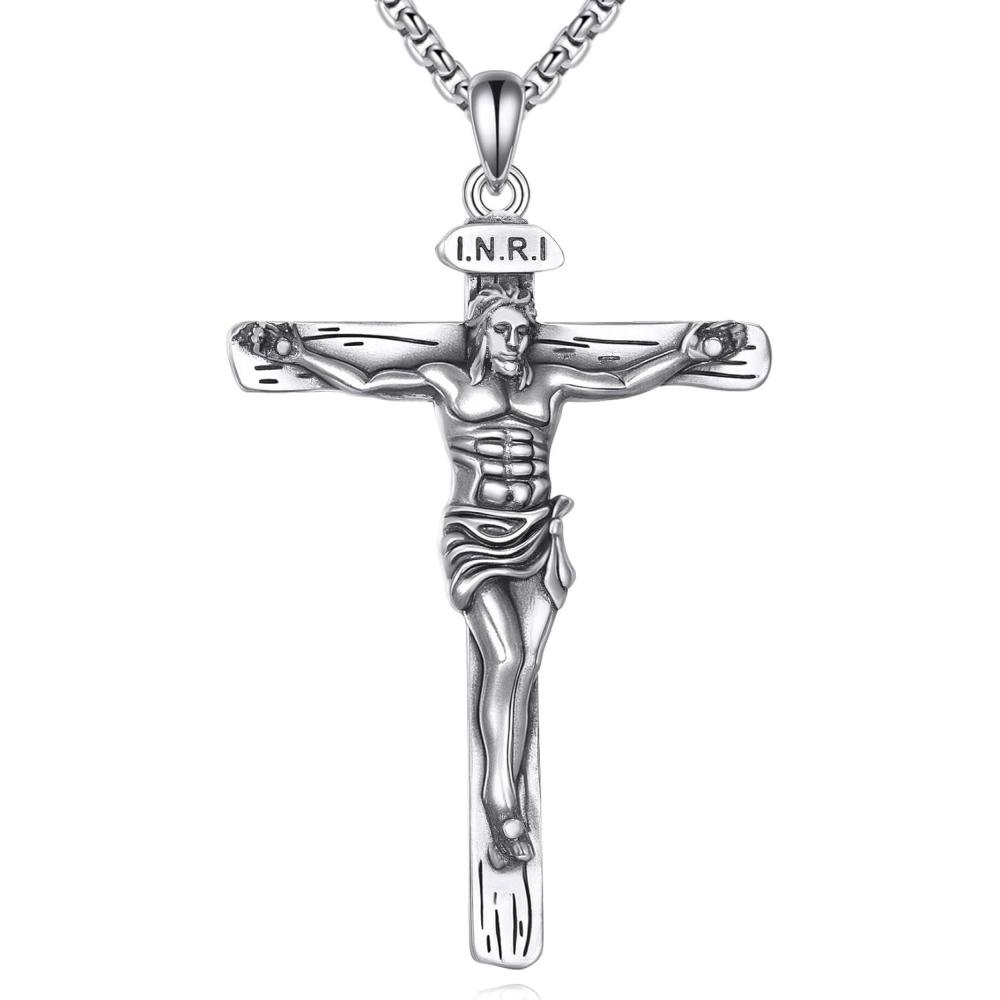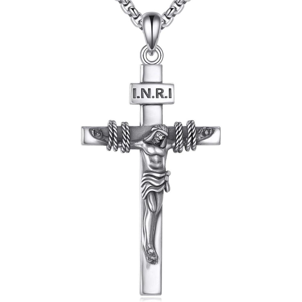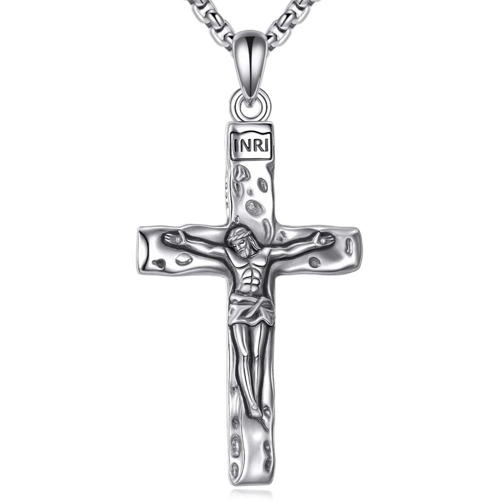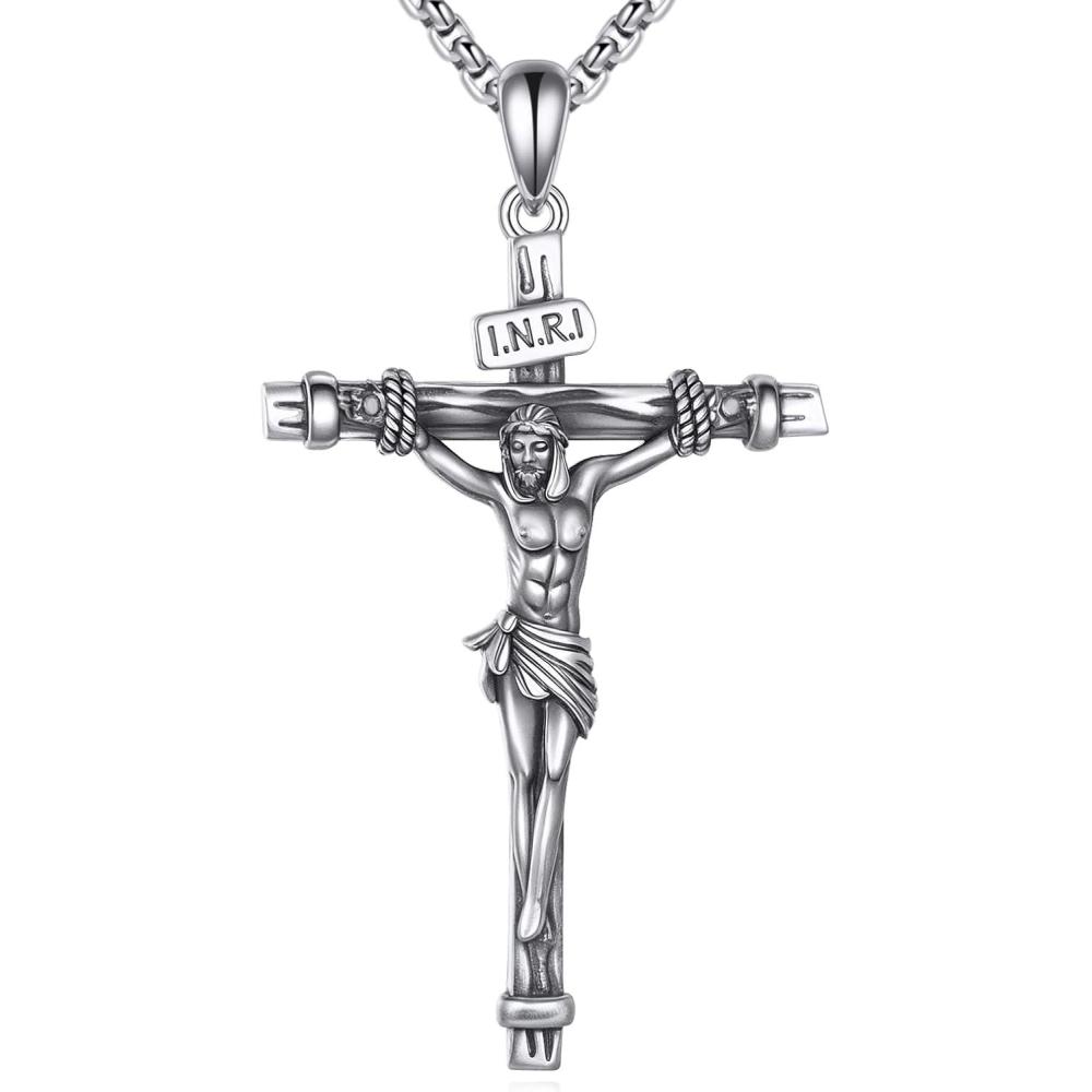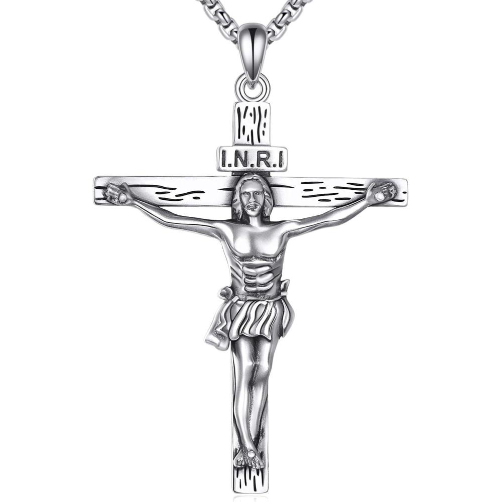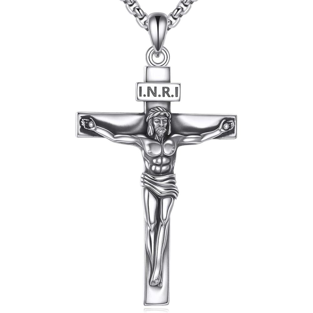 925 Sterling Silver Cross Necklace for Men & Women Crucifix Jesus/Cross Pendant with 22″ 2″ Stainless Steel Chain Jewelry Gift for Christmas, Father’s Day, Mother’s Day, Birthday-Gift Box Included(B04 Crucifix)
