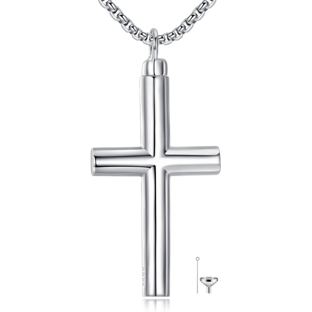 925 Sterling Silver Cross Necklace for Men & Women Crucifix Jesus/Cross Pendant with 22″ 2″ Stainless Steel Chain Jewelry Gift for Christmas, Father’s Day, Mother’s Day, Birthday-Gift Box Included(C02 Cross Urn)
