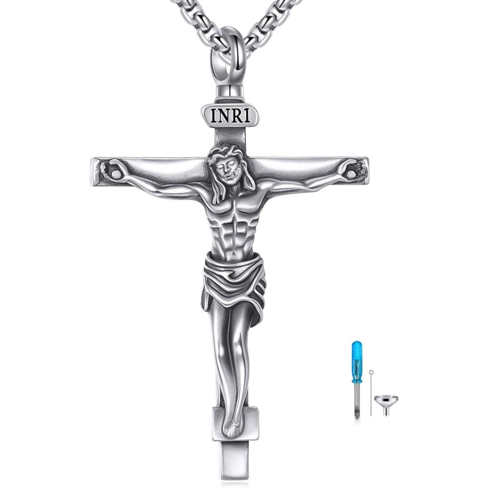 925 Sterling Silver Cross Necklace for Men & Women Crucifix Jesus/Cross Pendant with 22″ 2″ Stainless Steel Chain Jewelry Gift for Christmas, Father’s Day, Mother’s Day, Birthday-Gift Box Included(C03 Crucifix Urn)