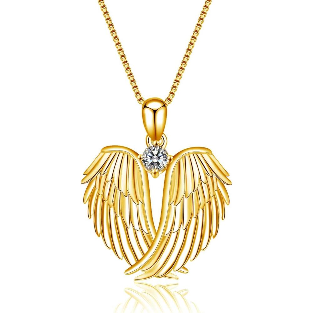 YFN Angel Wings Necklace 925 Sterling Silver Guardian Angel Wings Pendant Necklace Birthstone Necklace for Women Girls Christmas Jewelry Gifts(18k yellow gold plated)