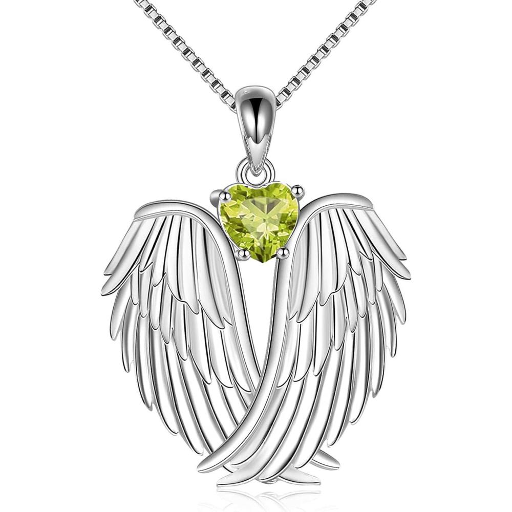 YFN Angel Wings Necklace 925 Sterling Silver Guardian Angel Wings Pendant Necklace Birthstone Necklace for Women Girls Christmas Jewelry Gifts(August wings)
