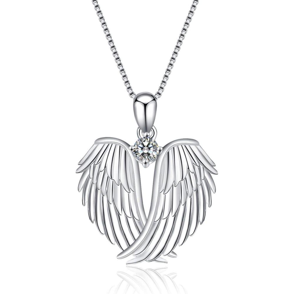 YFN Angel Wings Necklace 925 Sterling Silver Guardian Angel Wings Pendant Necklace Birthstone Necklace for Women Girls Christmas Jewelry Gifts(A-white gold plated)