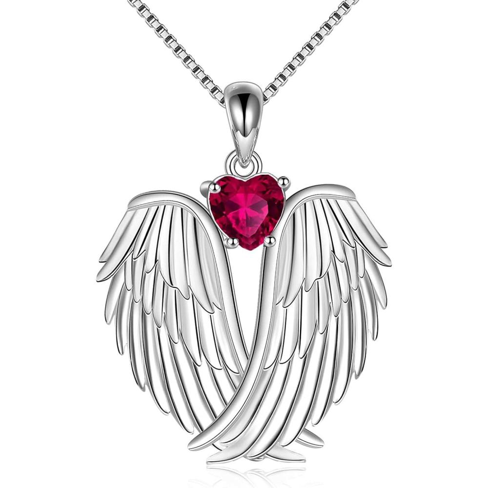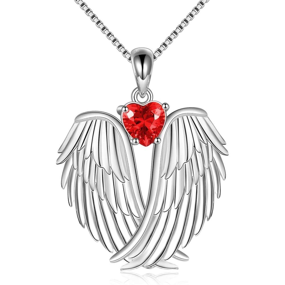 YFN Angel Wings Necklace 925 Sterling Silver Guardian Angel Wings Pendant Necklace Birthstone Necklace for Women Girls Christmas Jewelry Gifts(January-Red)