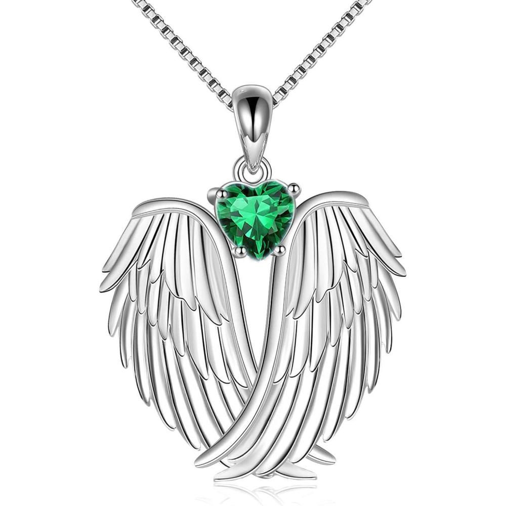 YFN Angel Wings Necklace 925 Sterling Silver Guardian Angel Wings Pendant Necklace Birthstone Necklace for Women Girls Christmas Jewelry Gifts(May-Green)