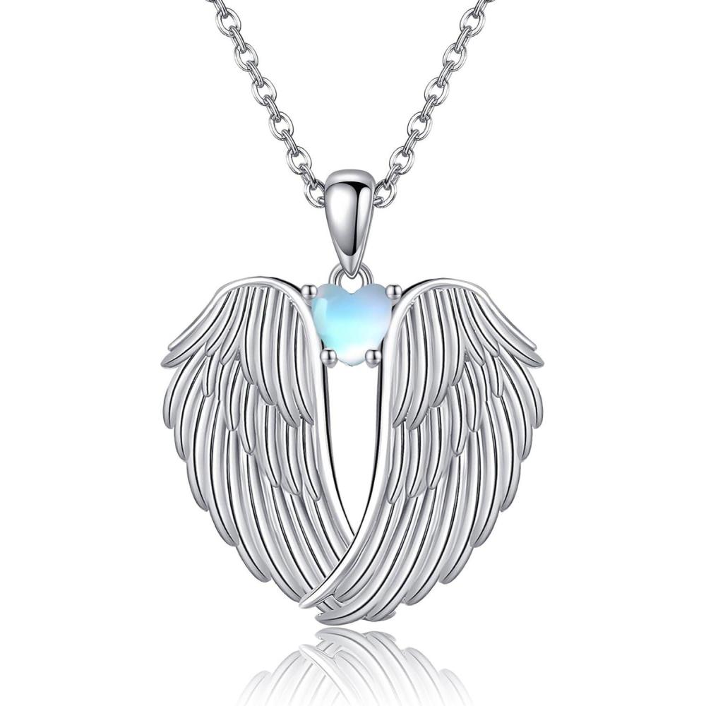 YFN Angel Wings Necklace 925 Sterling Silver Guardian Angel Wings Pendant Necklace Birthstone Necklace for Women Girls Christmas Jewelry Gifts(moonstone wings)